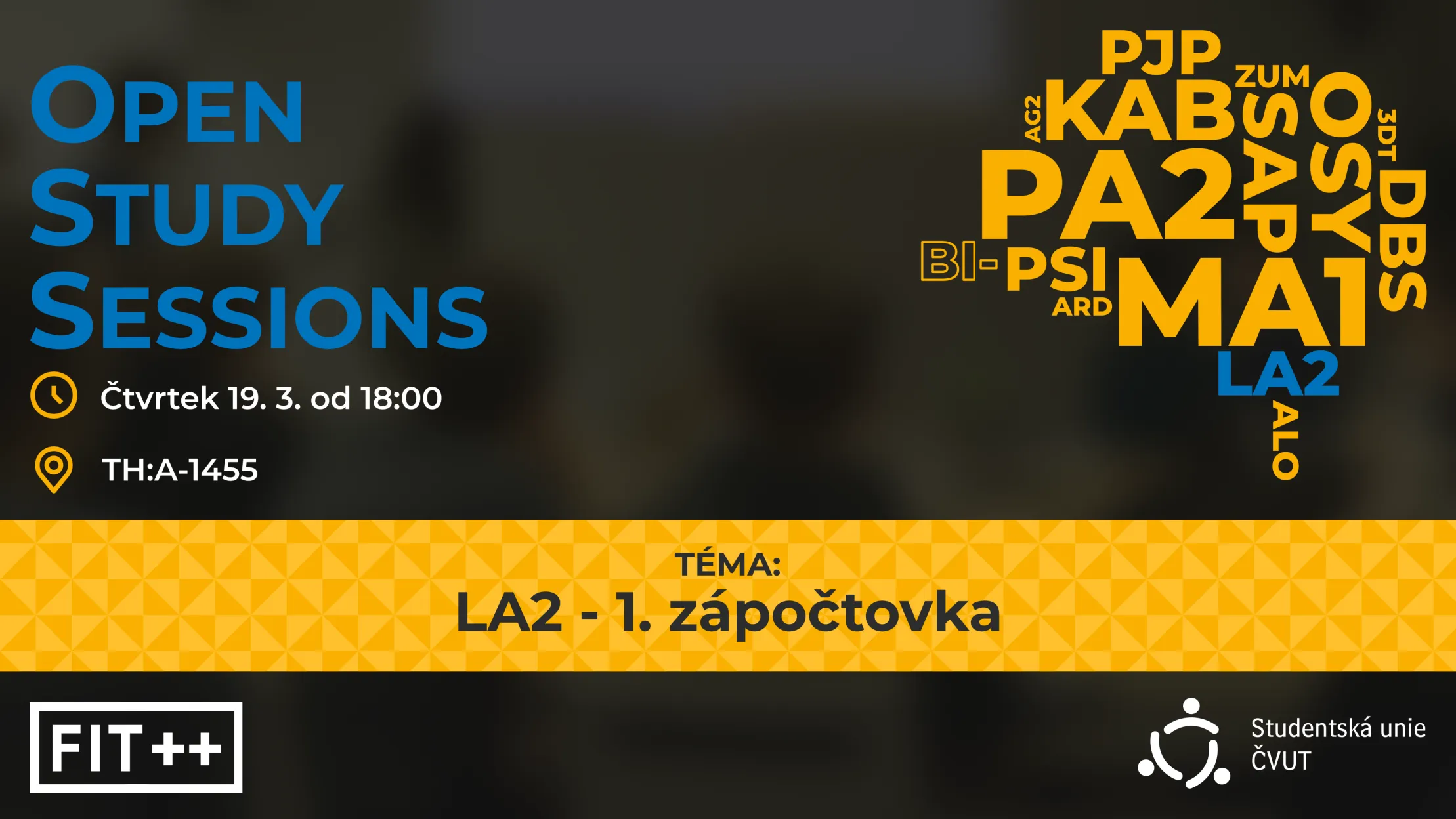 Bojíte se, že vaše znalosti z LA2 leží v jádru zobrazení na tento zápočet a nechcete, aby to celé byl defekt? Přijďte ve čtvrtek 19. 3. na OpenStudySession a my vám s přípravou na zápočtovku pomůžeme.